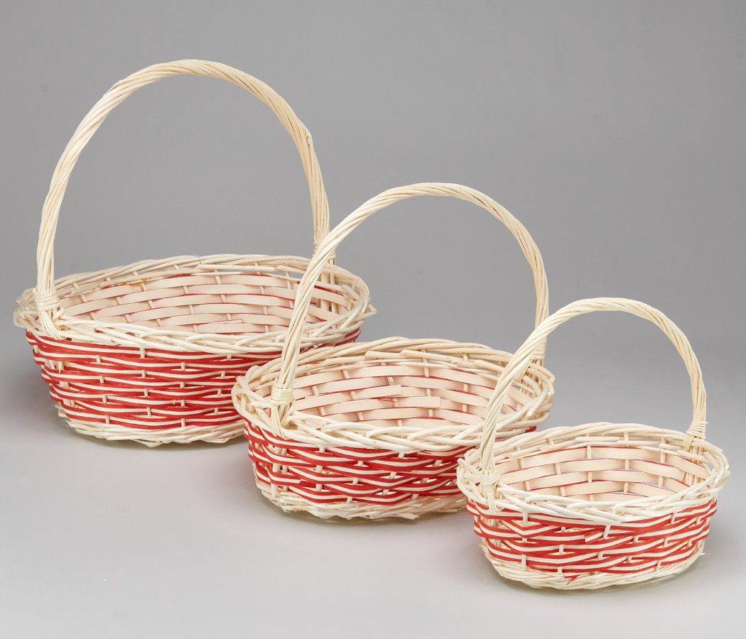 Н-р корзин плетеных (ива): 39*32*H13*HH36, 34*26*H11*HH31, 28*20*H10*HH25, 3 шт., белый/красный