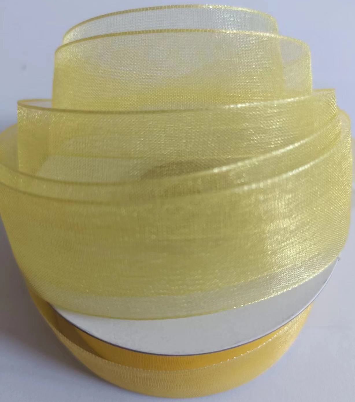 Лента органза на катушке, 25мм*25ярд, лимонный (5 шт/упак)