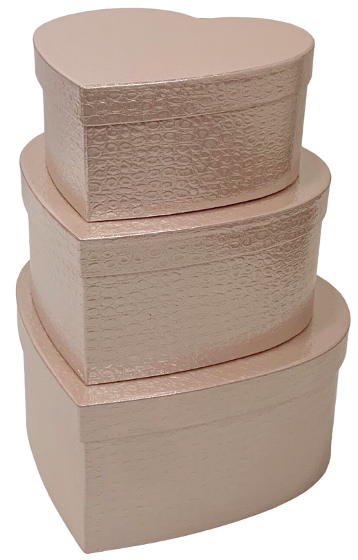 Набор коробок "Фактурные сердца" 28,3x25,8x13,5 см, 24,5x22,8x11,5 см, 21x20x9,5 см, 3 шт., св.роз