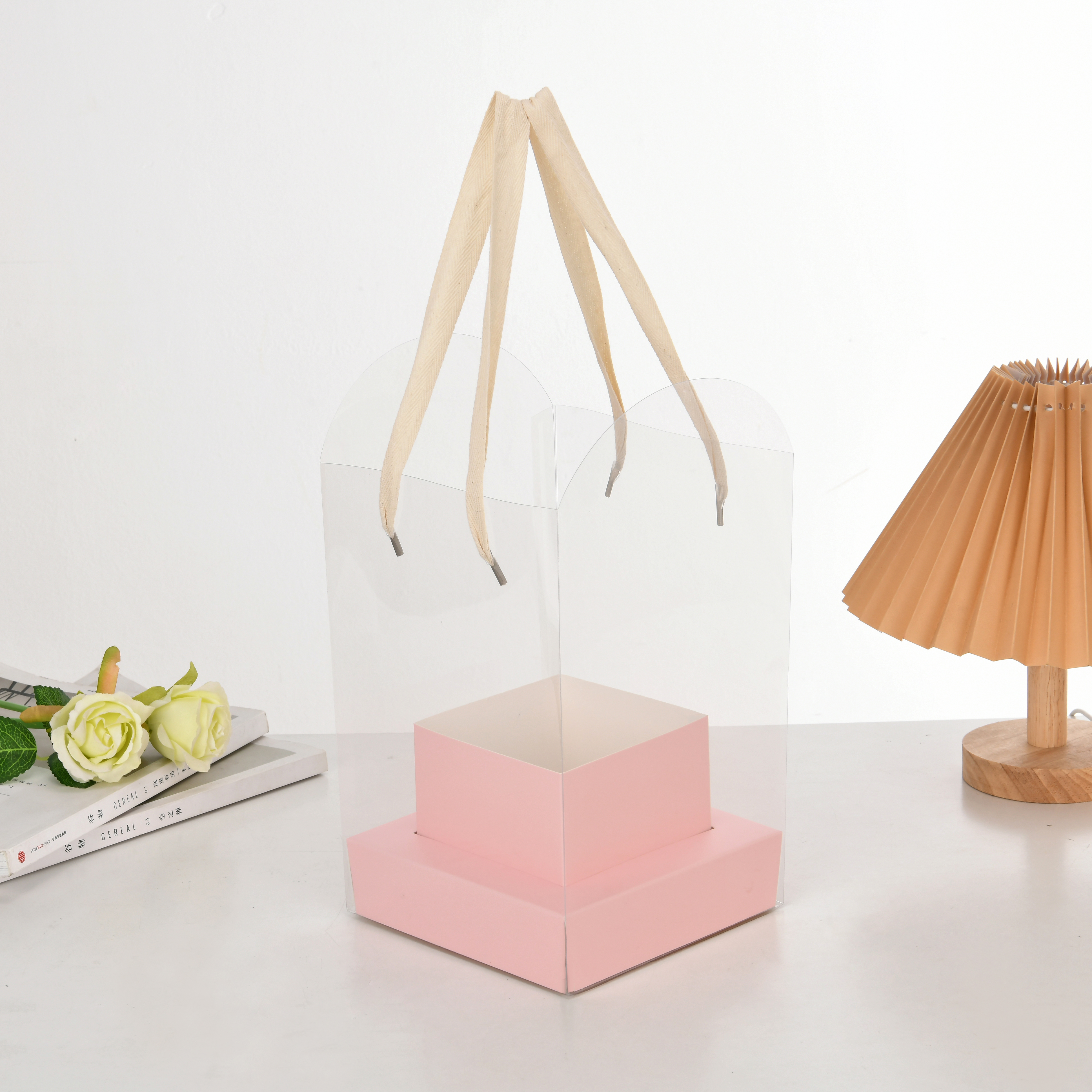 Подарочная коробка-переноска для цветов с ручками, 16 см*16 см*24 см. (10 шт./упак), розовый