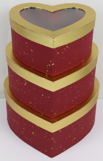 Набор коробок "Сердца с золотой окантовкой" 26x23x12H, 23,5x20,5x11H, 20,5x18x10H, 3 шт., красный