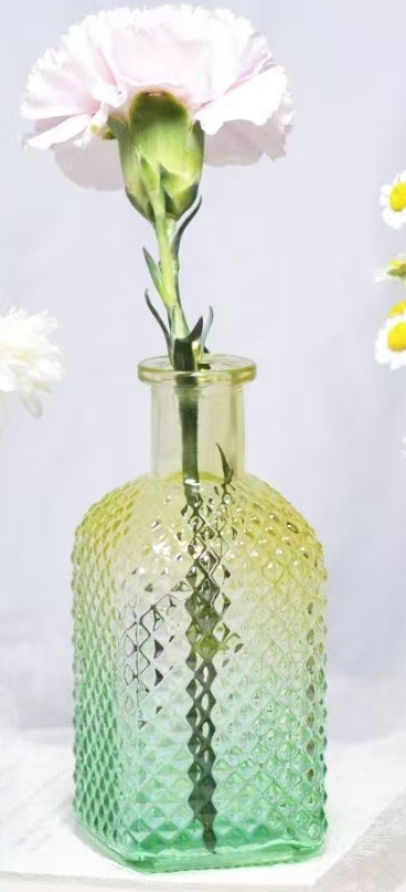 Ваза стеклянная D6,3 * H13,5 см, 1 шт., градиент зеленый/желтый
