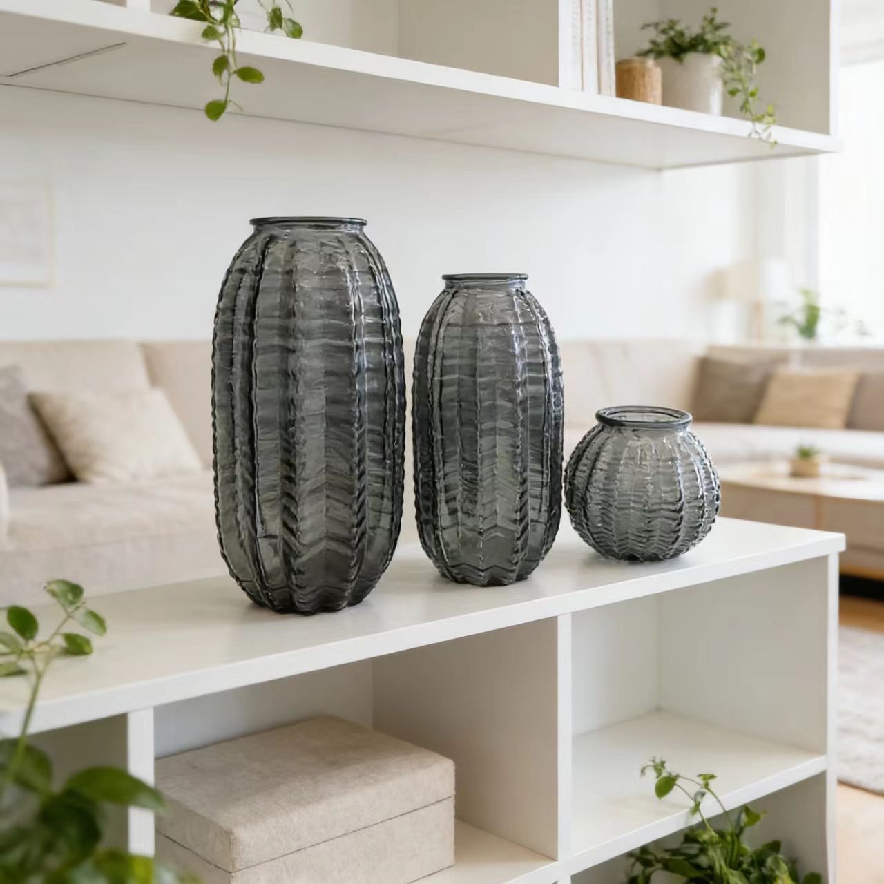 Ваза стеклянная D11,5 * H24 см, 1 шт., серый