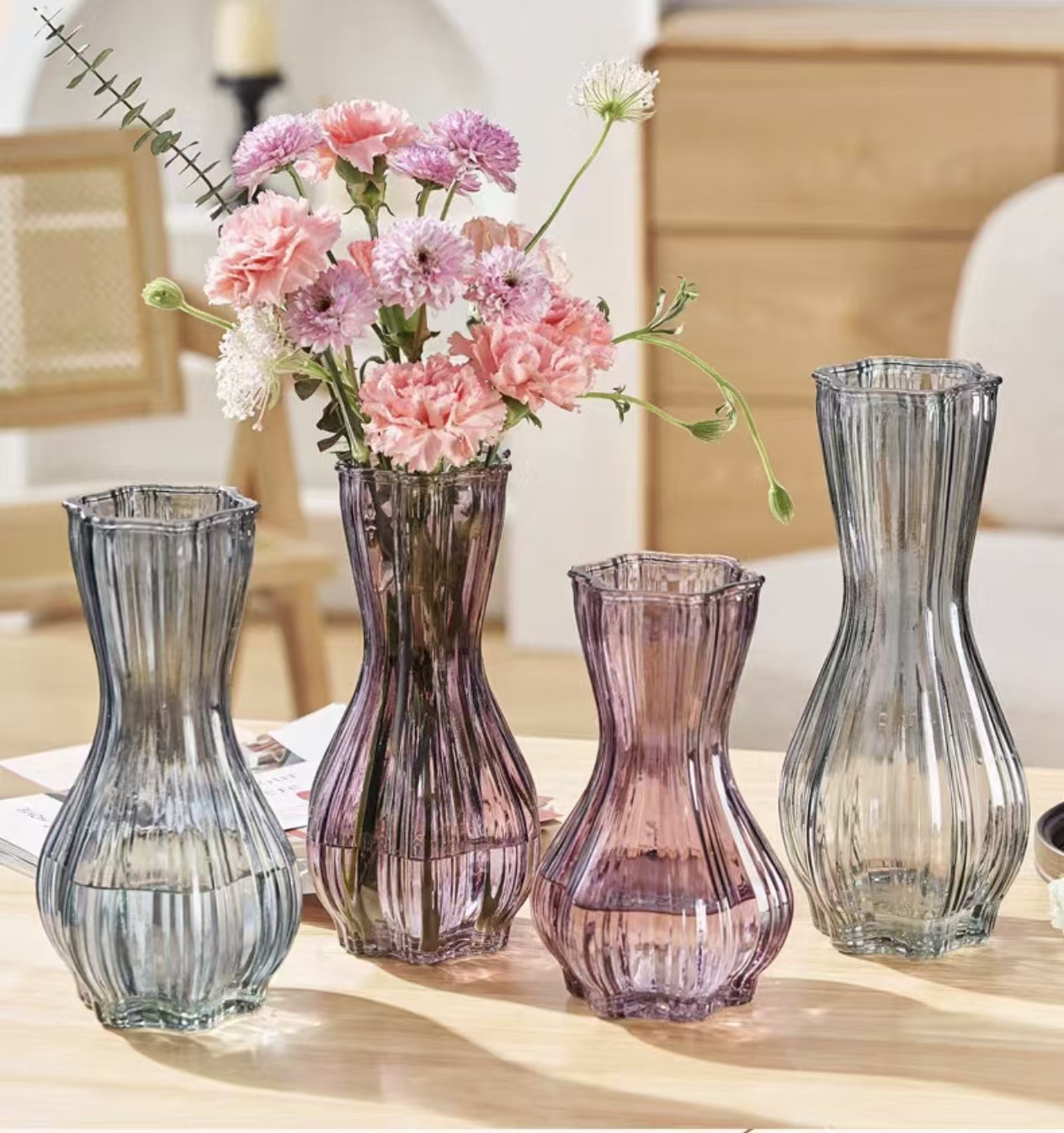 Ваза стеклянная D9*24 см, 1 шт., сиреневый.