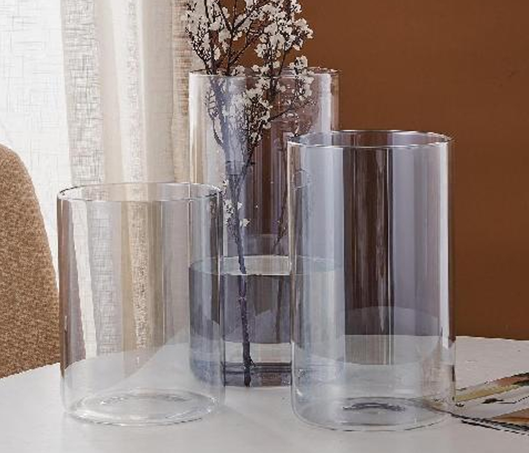 Ваза стеклянная 15*15*40 см, 1 шт., серо-голубой.