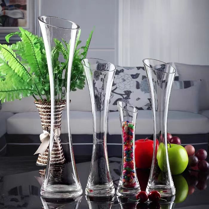 Ваза стеклянная со скошенным краем H30 см, 1 шт, прозрачный