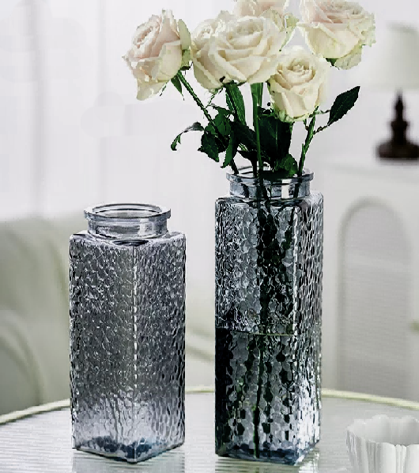 Ваза стеклянная 10*10*28 см, 1 шт., серый