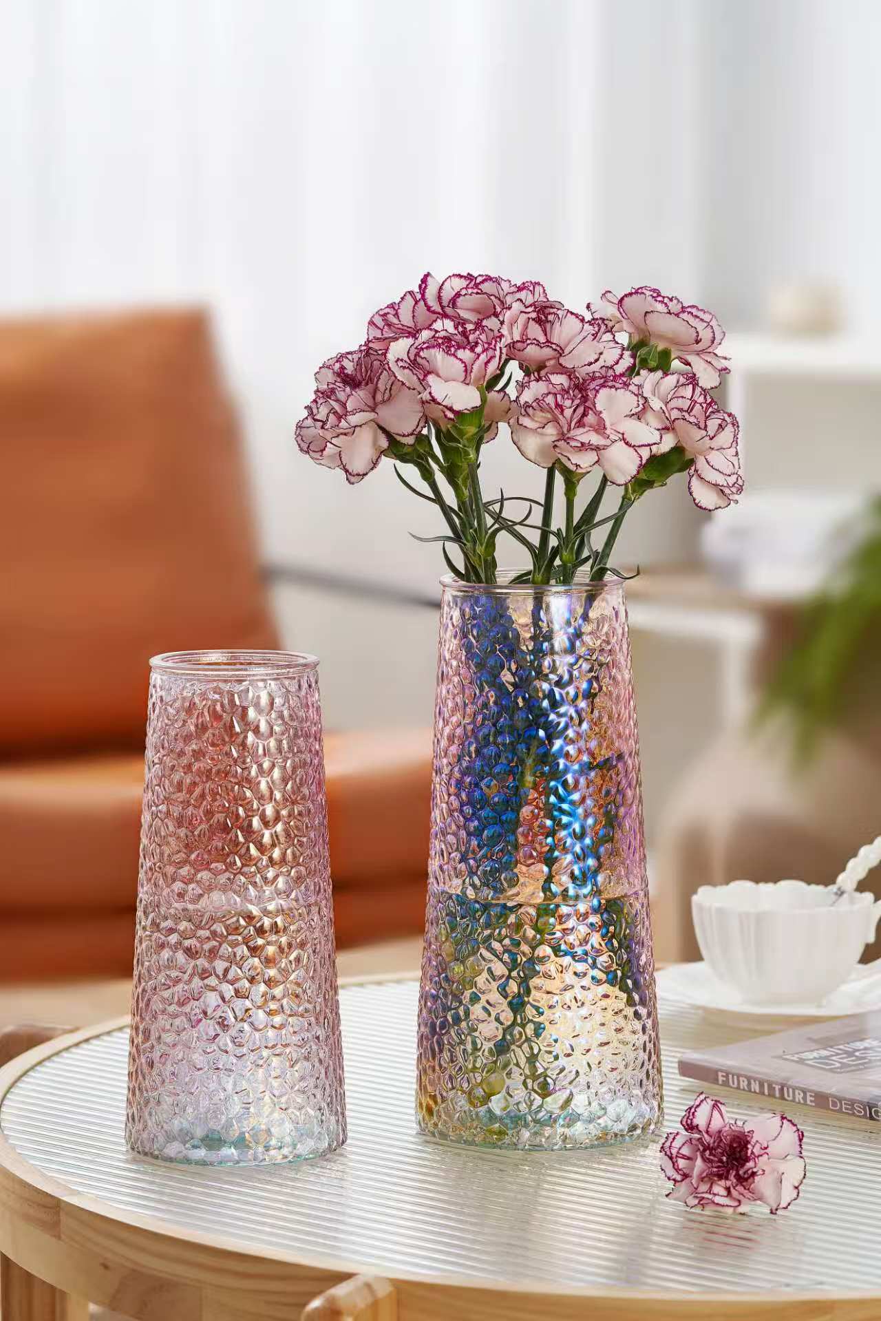Ваза стеклянная D9 * H20 см, 1 шт., св.розовый