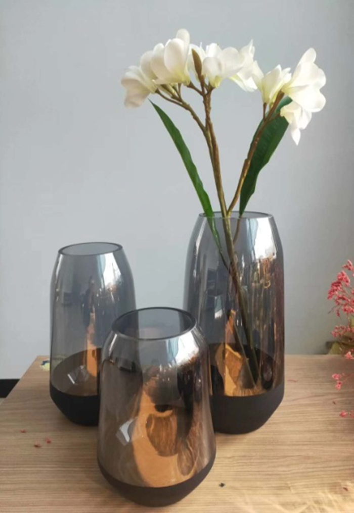 Ваза стеклянная D19 * H28 см, 1 шт., серый/черный