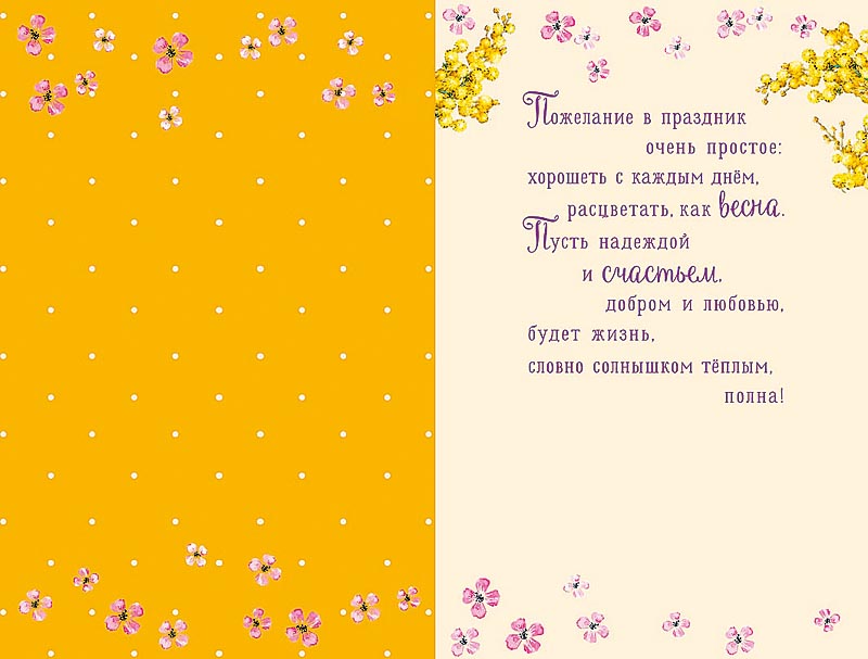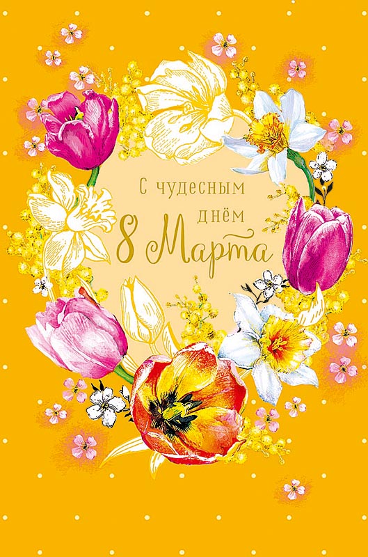 Открытка "С чудесным Днем 8 Марта", размер: 12,1х18,3 см. в упак. 5 шт.