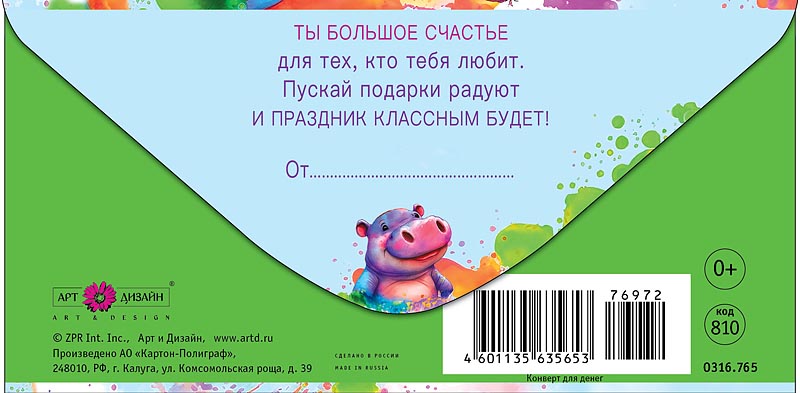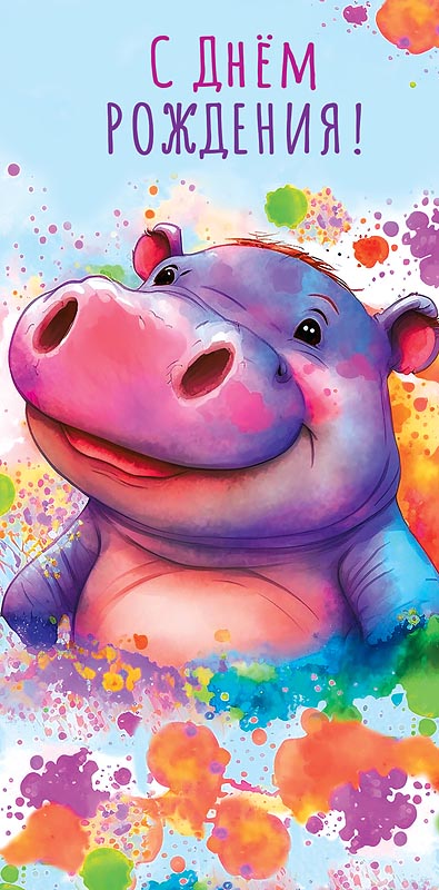 Открытка-конверт "С Днем Рождения", размер: 8,3х16,7 см. в упак. 5 шт.