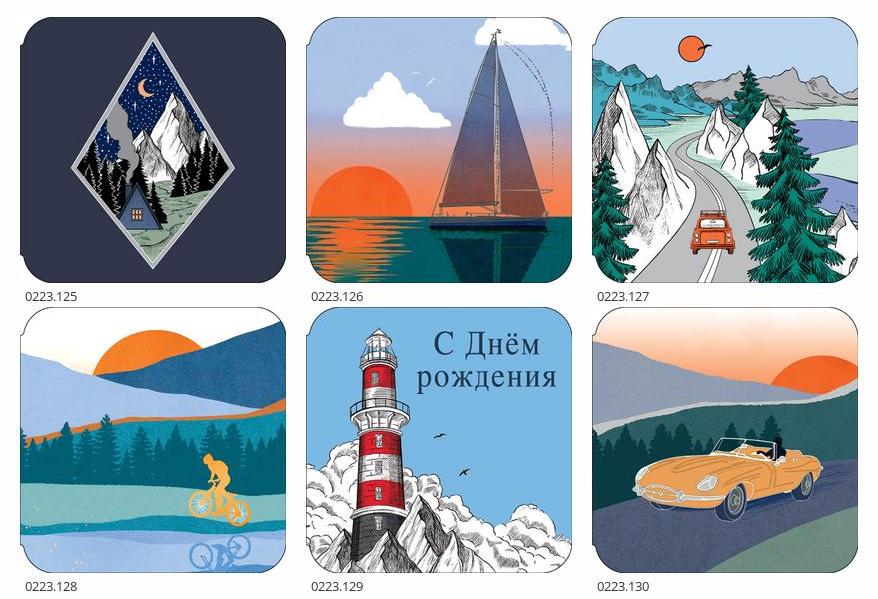 Набор открыток мини №227, размер открытки 7х7 см. в наборе 120 шт.