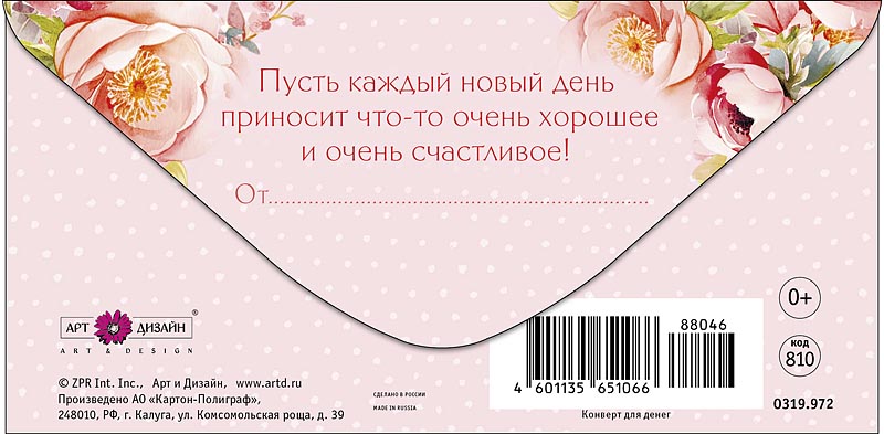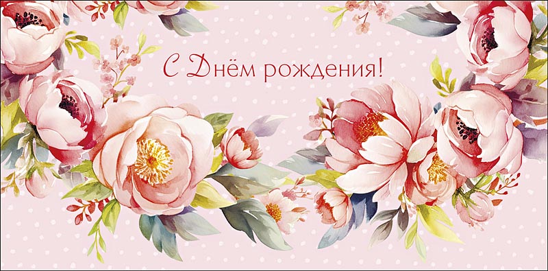 Открытка-конверт "С Днем Рождения!", размер: 8,3х16,7 см, в упак. 10 шт.